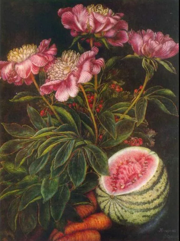 Катерина Білокур. Натюрморт «Кавун, морква, квіти», 1951. Фото: vogue.ua