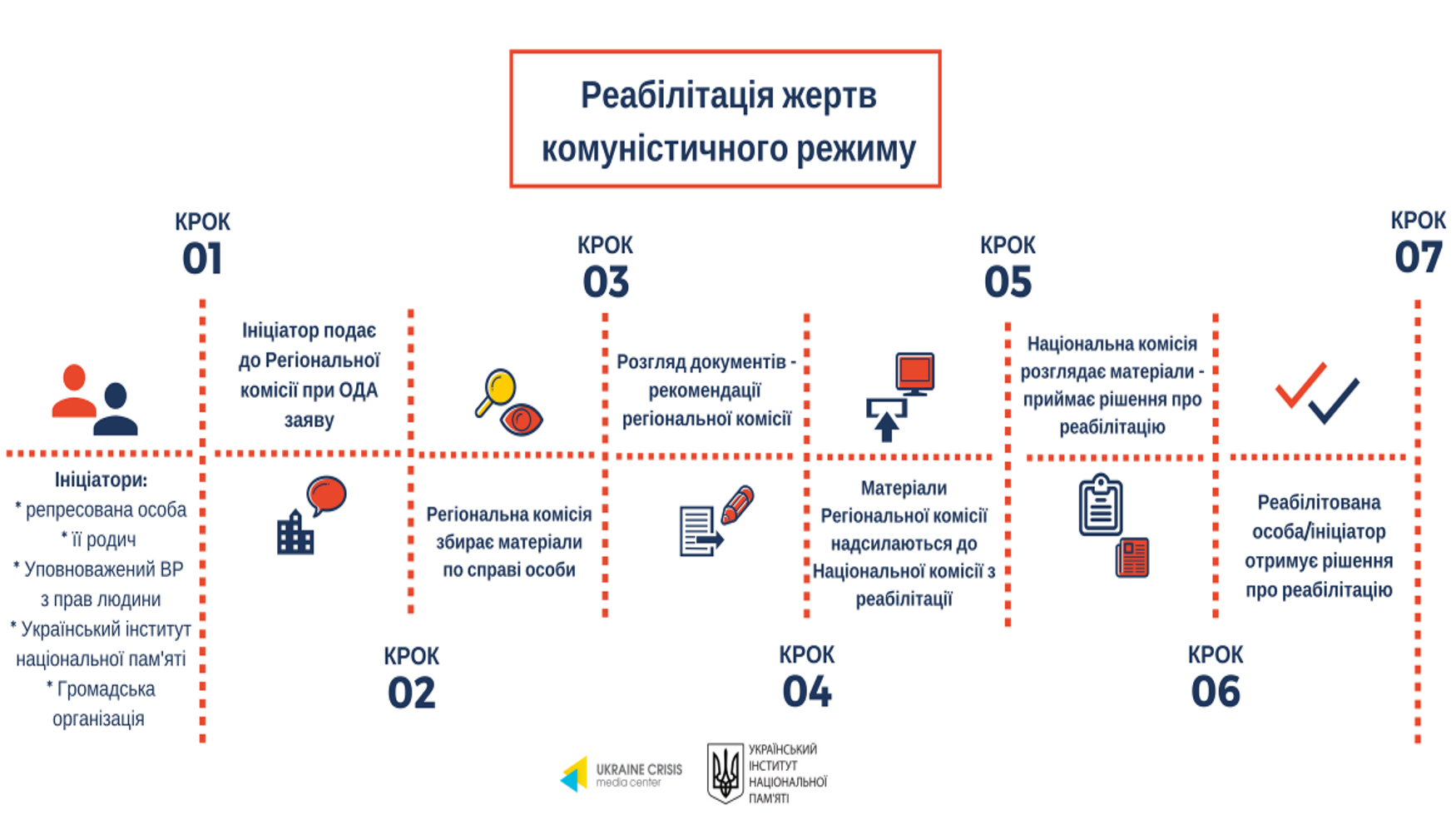 Відповідно до статті 7 закону «Про реабілітацію жертв репресій комуністичного тоталітарного режиму 1917–1991 років» розгляд питання про визнання особи реабілітованою чи потерпілою від репресій здійснюється за заявою: