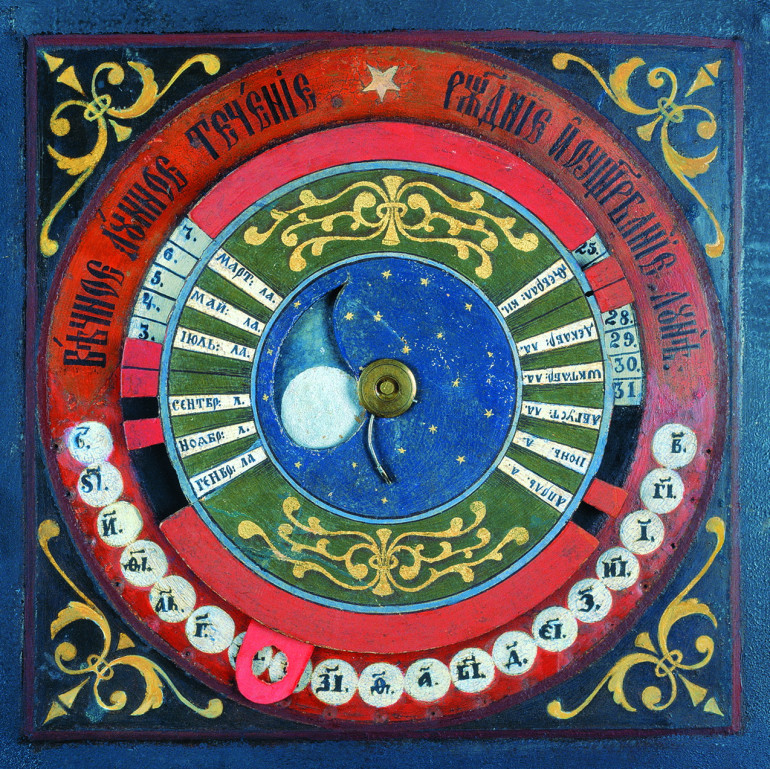 На фото: календар місячний, настінний. 18 ст. Належав старому козаку, мешканцю Межигірського монастиря. Експонат Дніпропетровського національного історичного музею імені Дмитра Яворницького