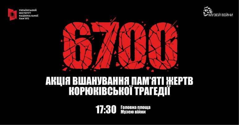 2 березня 2026 року о 17:30 на території Національного музею історії України у Другій світовій війні (Музею війни) відбудеться меморіальна акція “6700”, присвячена вшануванню жертв Корюківської трагедії 1943 року.